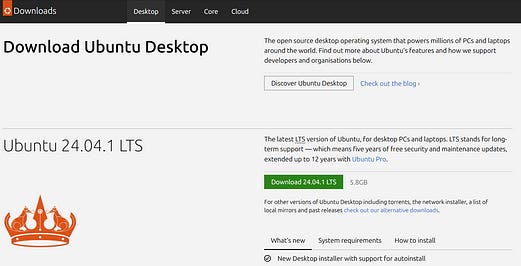 Next, we download the Ubuntu ISO file from the Ubuntu website. An ISO Ubuntu file is a compressed image file of the Ubuntu operating system. This means that it contains a complete copy of the installation data. I download the LTS version because this version receives security and maintenance updates for 5 years (Long Term Support). Note the location of the .iso file as we will use it later in VirtualBox.